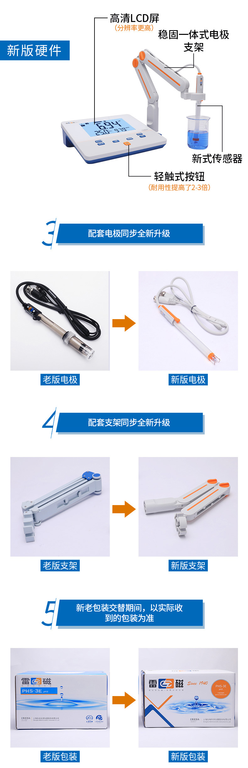 雷磁(leici)PHS-3E型實(shí)驗(yàn)室PH計(jì)標(biāo)配套裝手動(dòng)自動(dòng)溫補(bǔ)液晶顯示酸度計(jì)