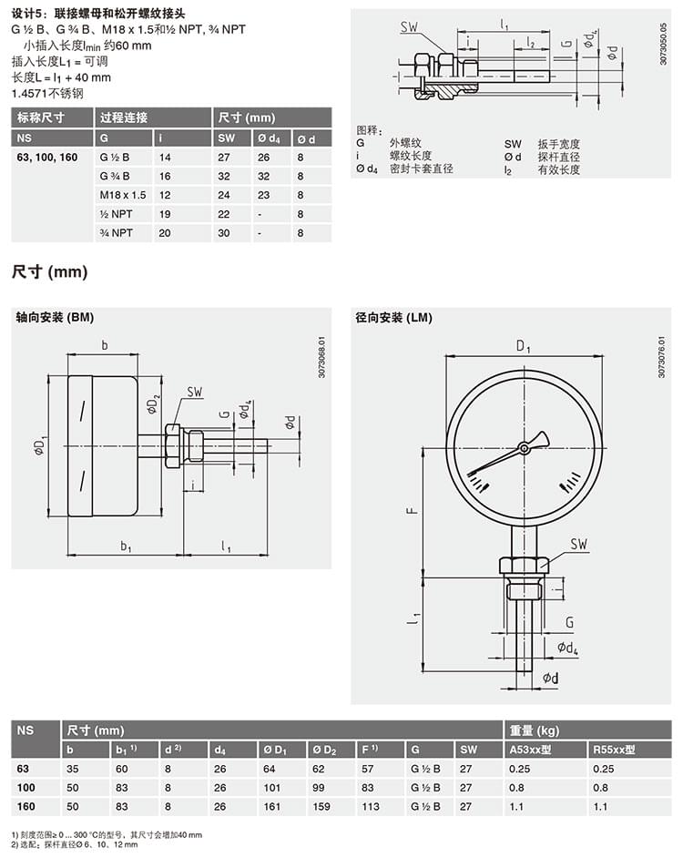 R55/A55/S55 雙金屬溫度計 耐腐蝕不銹鋼溫度計