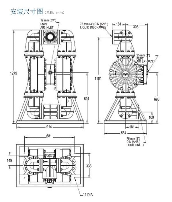 介質(zhì)出口尺寸.....................................3” (76 mm)