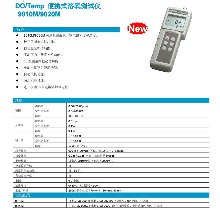 便攜數(shù)顯溶解氧測試儀9010M JENCO/任氏水產(chǎn)養(yǎng)殖河道水質(zhì)測量儀表