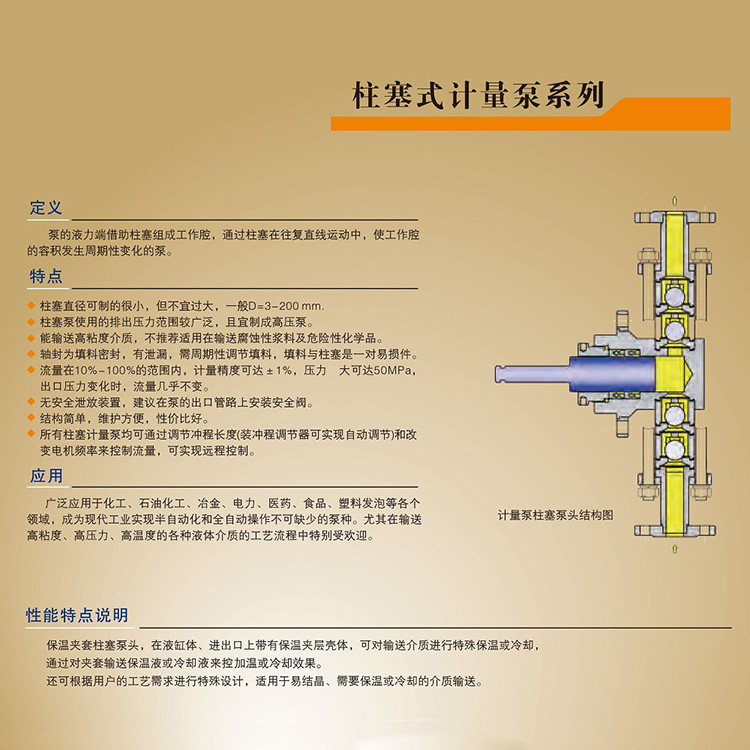10、可根據(jù)工藝要求,泵頭可制成保溫、冷卻夾套型和電加熱型等多種特殊設(shè)計。