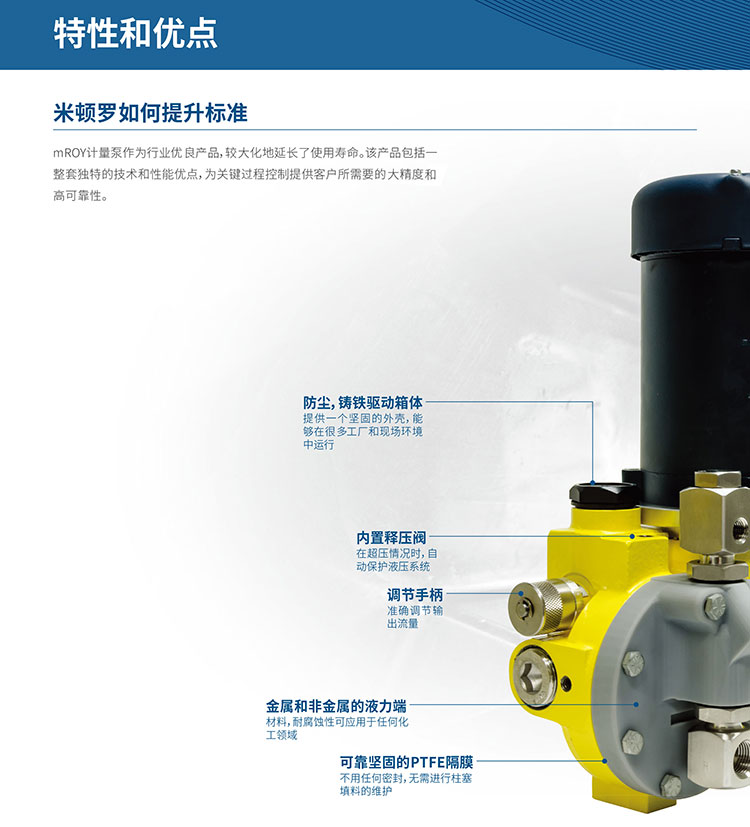 由于體積小巧、結(jié)構(gòu)耐用和性能可靠,mROY計量泵適用于多種應(yīng)用。