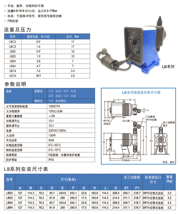 加藥計(jì)量泵LB04EB-KTC1型帕斯菲達(dá) PVDF泵頭脈沖控制電磁隔膜泵