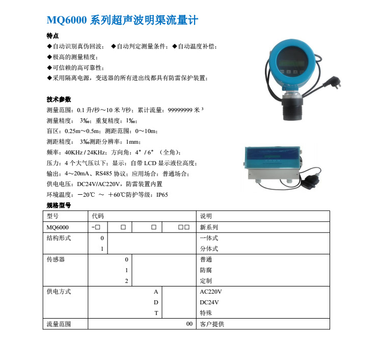 Apure愛(ài)普爾超聲波明渠流量計(jì)MQ6000LCD流量計(jì)