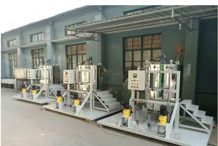 該裝置裝置配帶控制柜,可采用PLC控制或變頻控制??刂乒裨O(shè)置了低液位停泵、計量泵及攪拌機故障聲光報警等功能。
