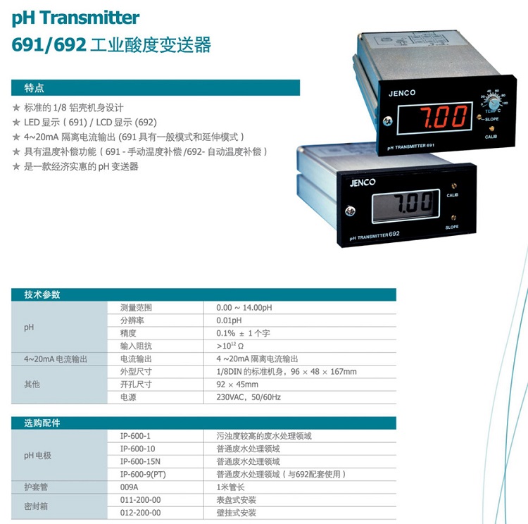 l 具有溫度補償功能(691-手動溫度補償/692-自動溫度補償)
