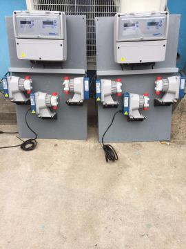 三臺或者四臺加藥計量泵可選,投加絮凝劑計量泵, 加酸計量泵,加氯計量泵和除藻劑加藥泵。