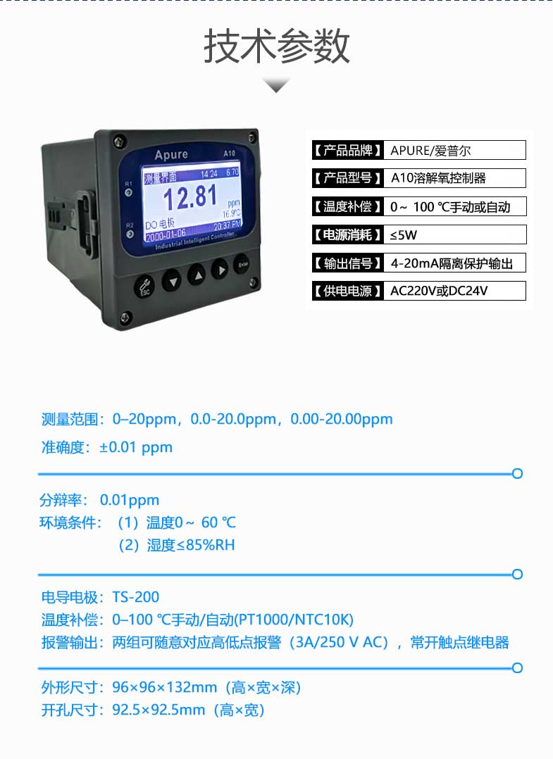 愛(ài)普爾Apure溶氧儀A10DO工業(yè)在線溶解氧控制器多功能水質(zhì)檢測(cè)儀