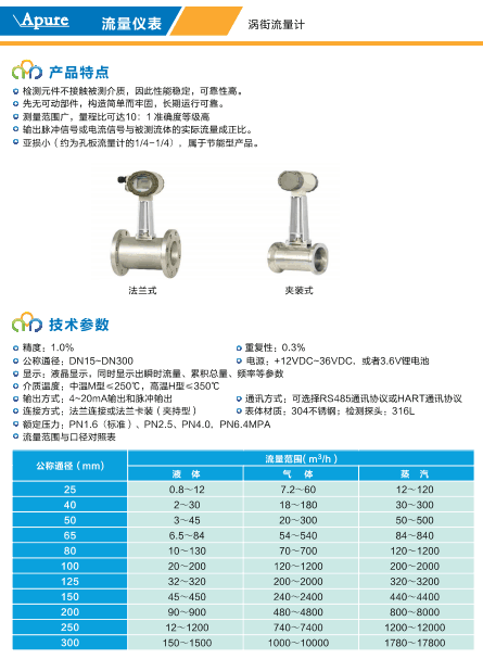 APURE愛普爾APT-32夾持式渦街流量計一體式4-20ma現(xiàn)場顯示流量計