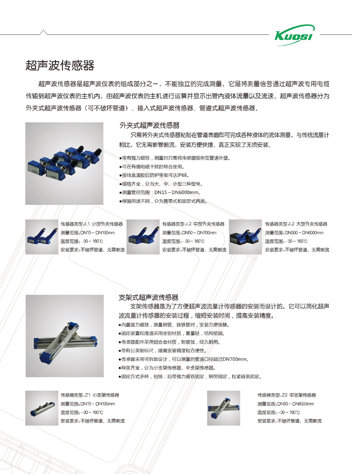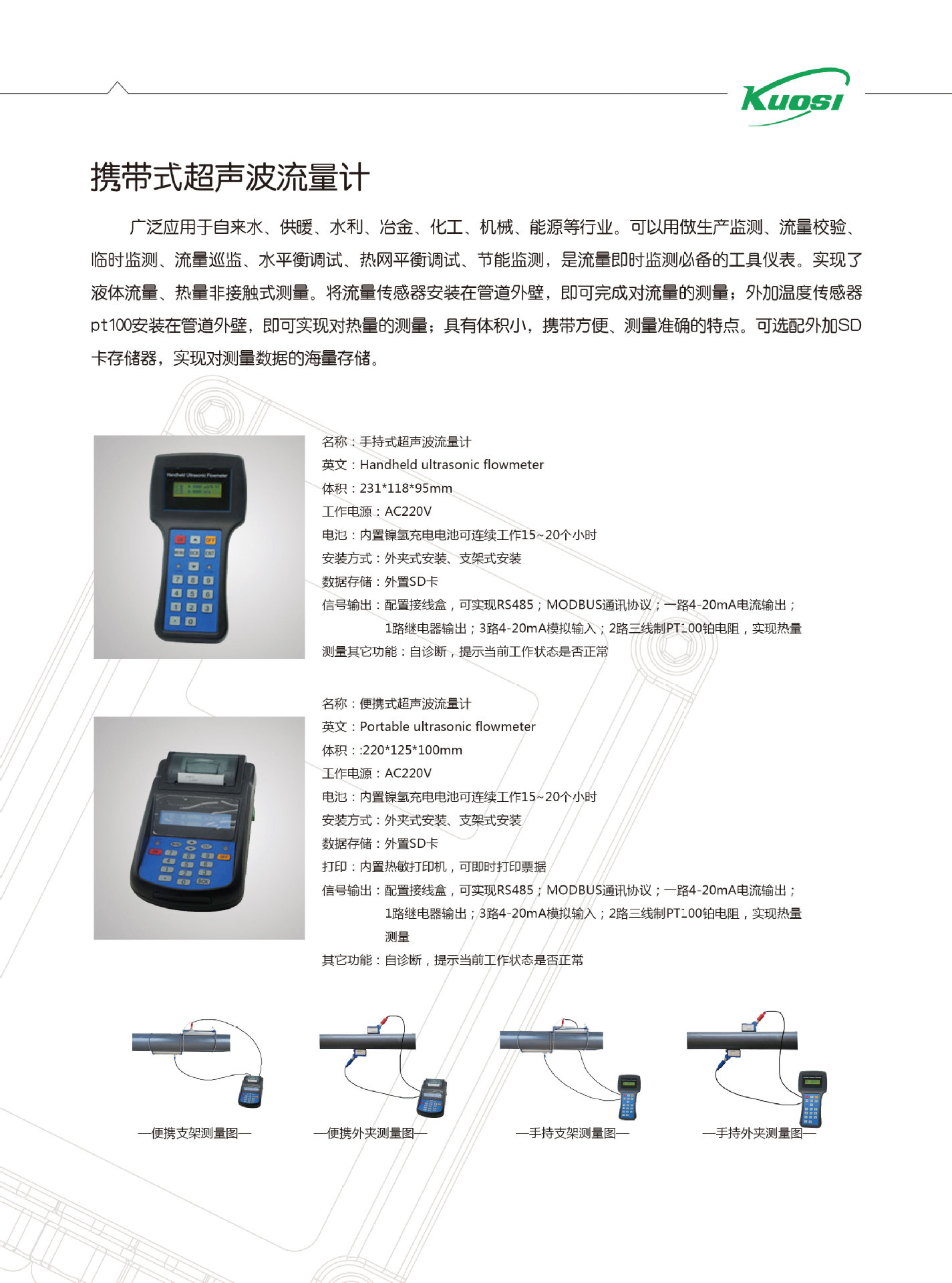 便攜式超聲波流量計水手持式管道式管壁外夾式液體傳感器