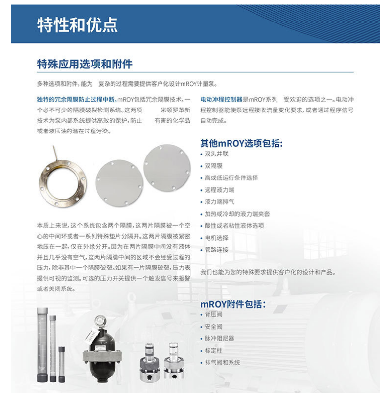 由于體積小巧、結(jié)構(gòu)耐用和性能可靠,mROY計(jì)量泵適用于多種應(yīng)用。