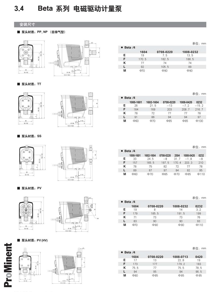 Beta型號壓力流量沖程流量沖程頻率連接尺寸吸程