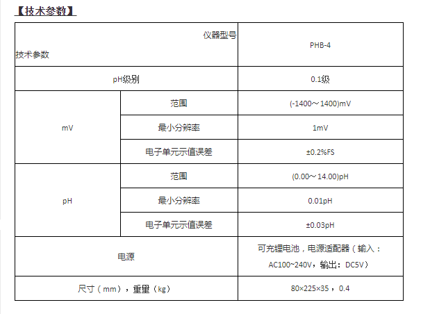 型號:便攜式PH計PHB-4
