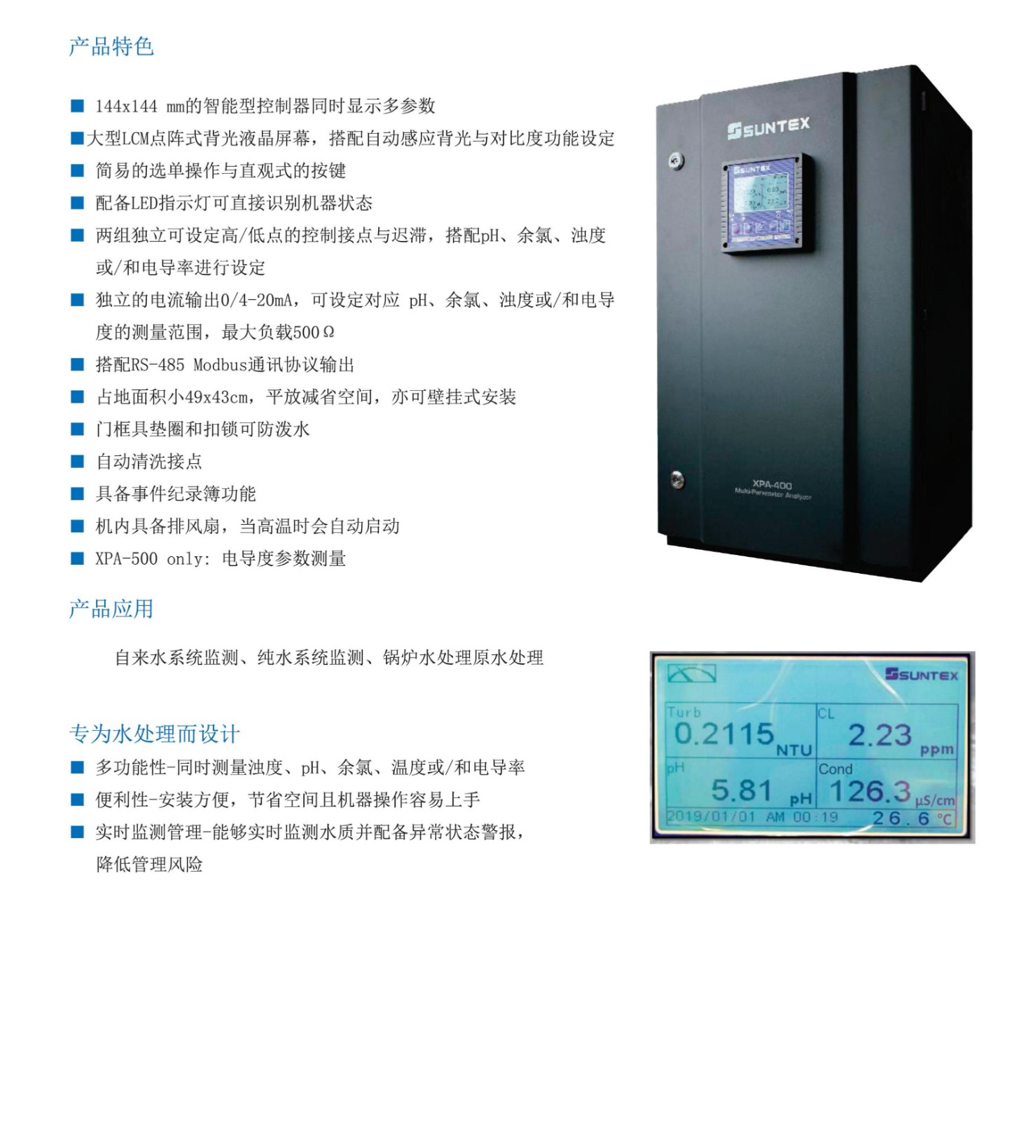 SUNTEX水質(zhì)四參數(shù)/五參數(shù)分析儀 XPA-400 XPA-500