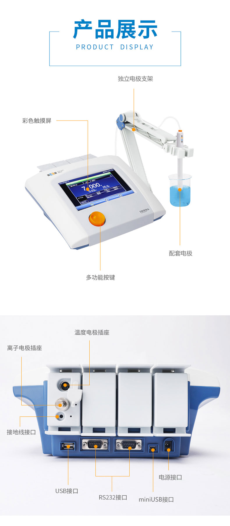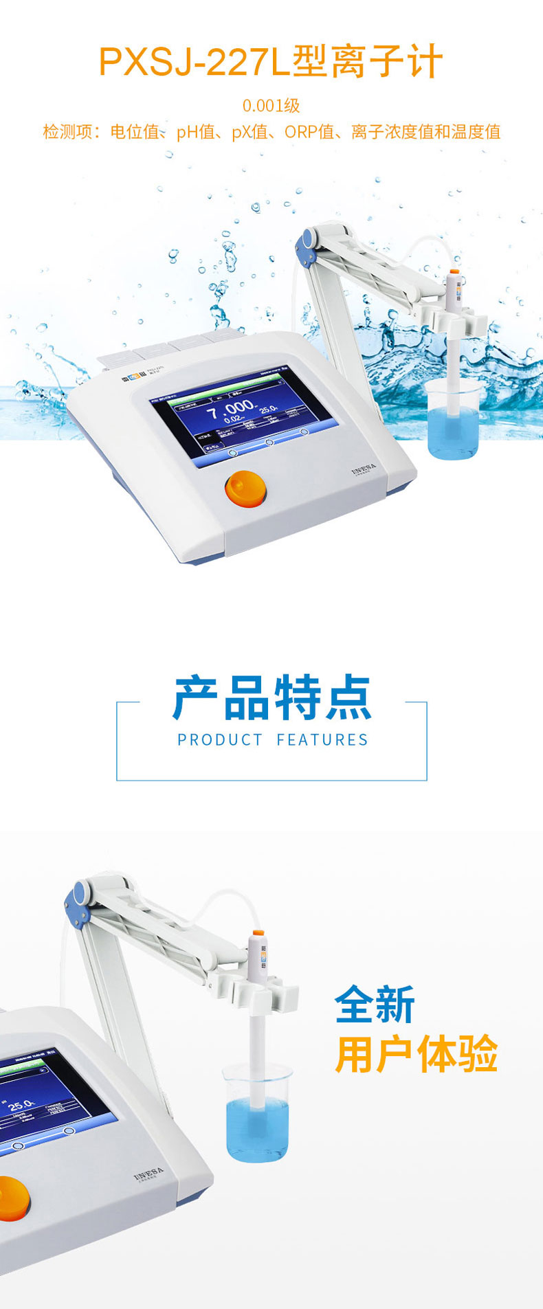 雷磁(leici)PXSJ-227L型離子計(jì)水質(zhì)分析儀液晶顯示屏中英文操作自動(dòng)溫補(bǔ)