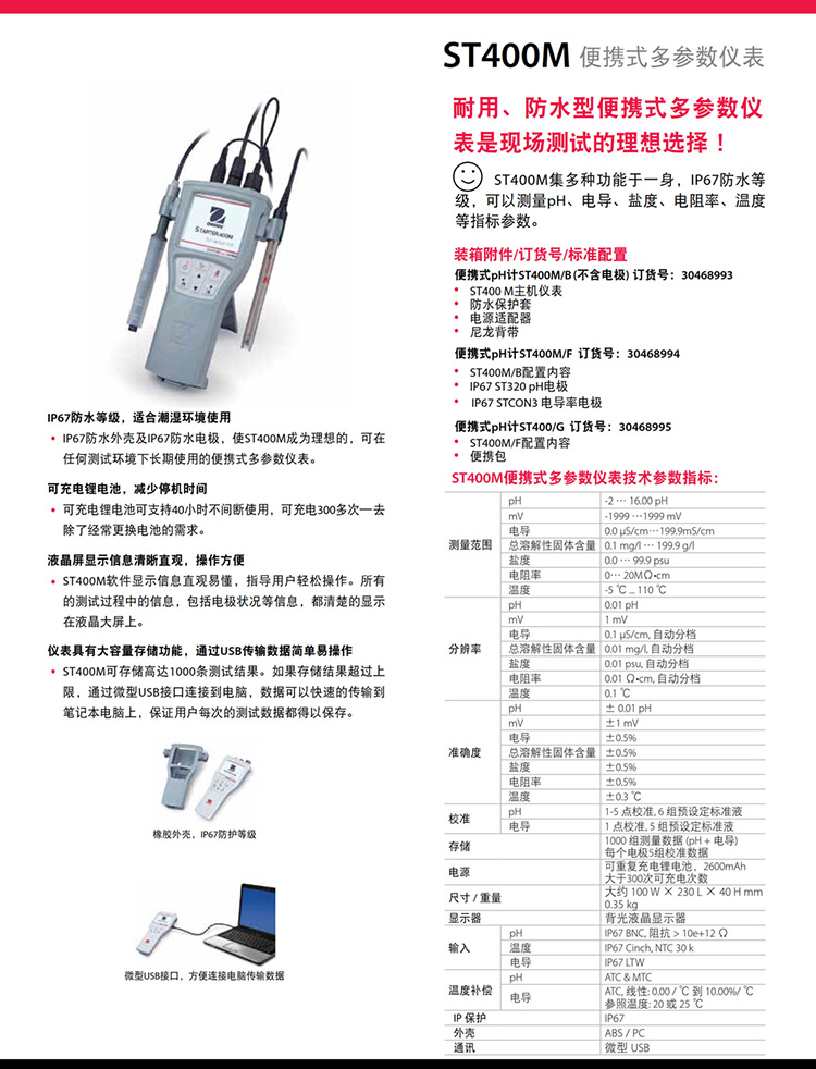 奧豪斯便攜式多參數(shù)儀表ST400M耐用防水多參數(shù)水質(zhì)分析儀監(jiān)測儀