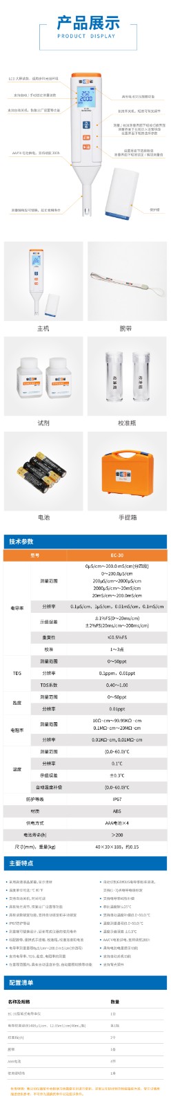 【雷磁】筆式電導(dǎo)率儀EC-30