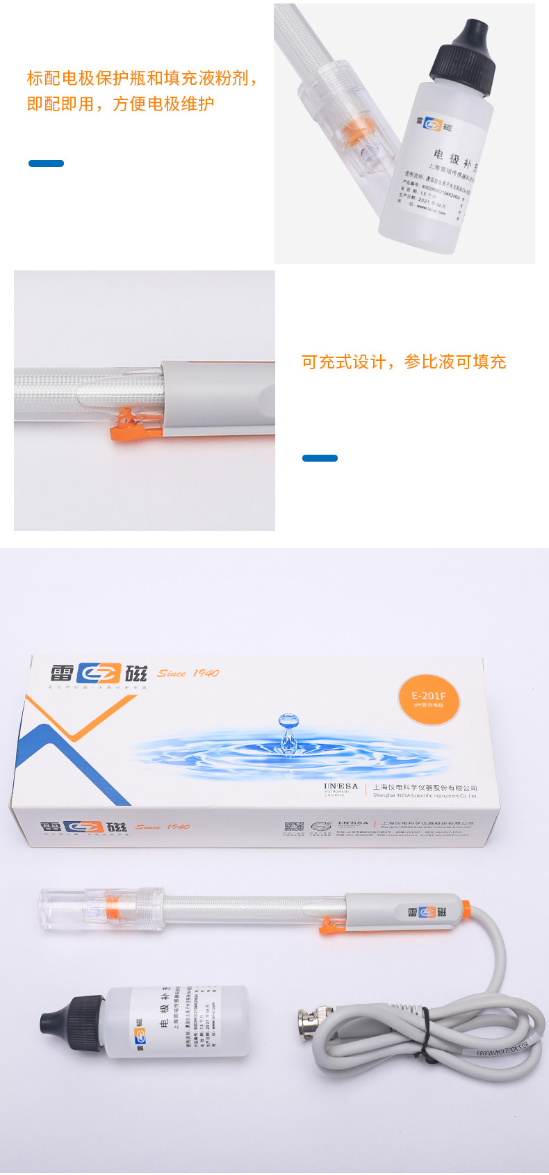 雷磁 E-201F 型 pH 電極傳感器 實驗室便攜式復(fù)合電極 ph 檢測探頭