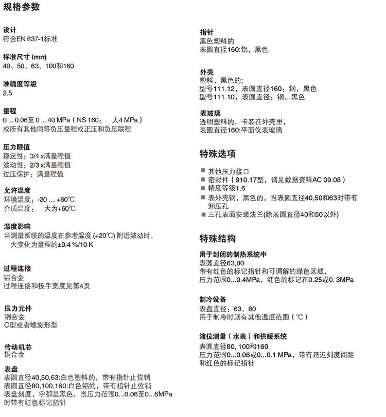 2. 膜片壓力表,化學(xué)工業(yè)型,表頭不充液/充液,高過壓保護壓力表,針對UHP應(yīng)用:422.12 432.50 432.56 423.36 423.25