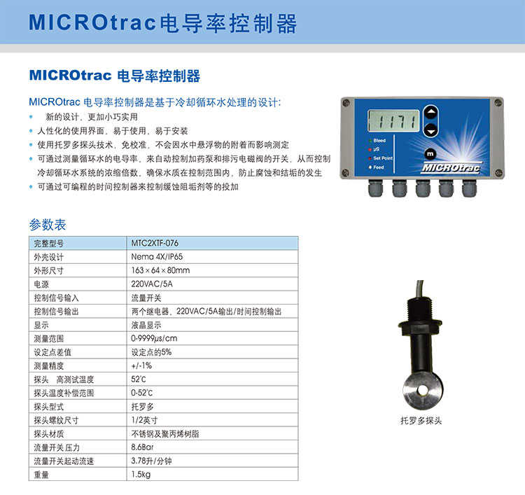 【帕斯菲達電導儀】電導率測試儀MICROtracMICROtrac 電導率控制器是基于冷卻循環(huán)水處理的設計: