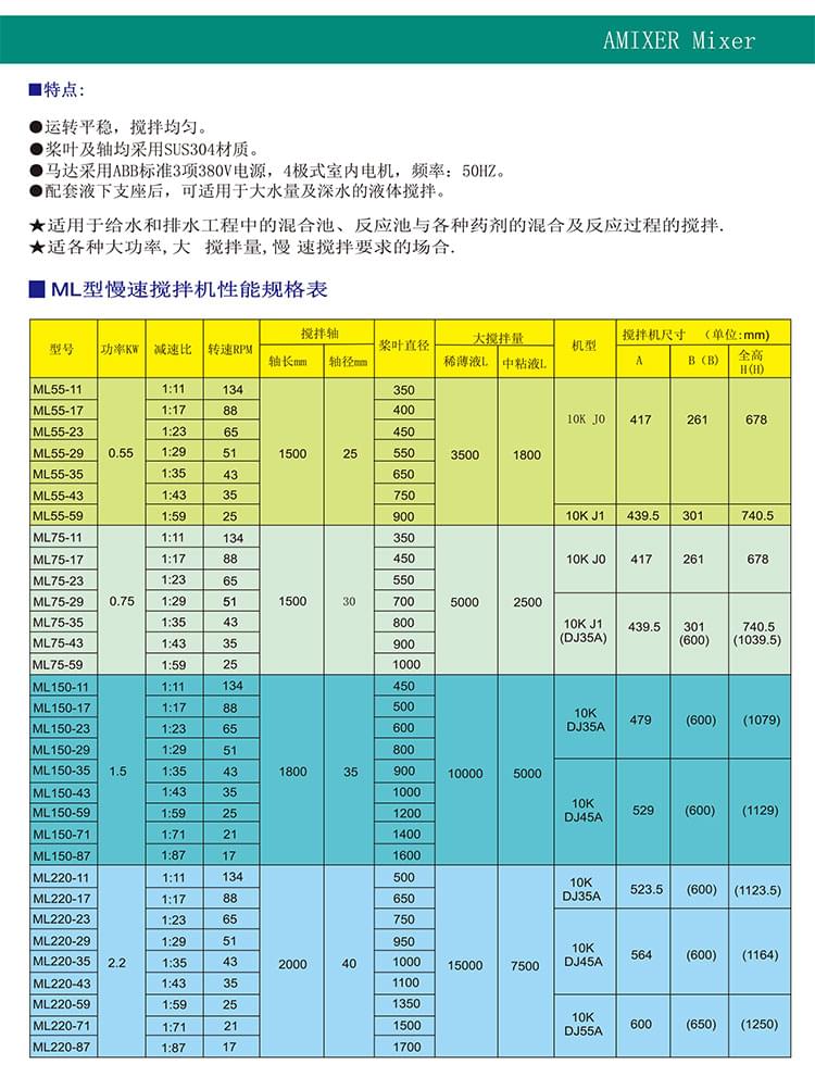 液體攪拌機(jī)產(chǎn)品介紹:【水處理攪拌機(jī)】加藥混合攪拌機(jī)ML750-23型是采用擺線齒輪合行星傳動(dòng)原理,是當(dāng)今國(guó)內(nèi)良好的傳動(dòng)工具,具有鈕距大、傳動(dòng)效率高、功率大、壽命長(zhǎng)、價(jià)格低、不加油,是環(huán)保加藥裝置好的配套產(chǎn)品。