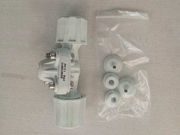本多功能閥閥體采用PVDF材質(zhì),隔膜片采用PTFE材質(zhì),觸液部分可以兼容所有常用化學(xué)品,考慮到當(dāng)前市場上使用的化學(xué)品的多樣性,請在使用前確認(rèn)本閥各部件材質(zhì)信息是否與待加液體相兼容,謝謝!