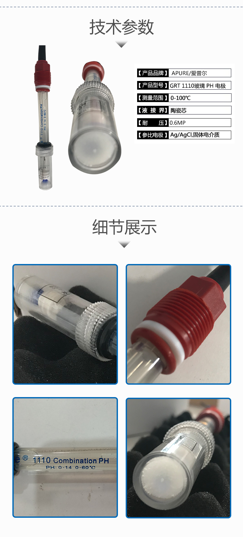 在線PH計(jì)探頭GRT1110愛(ài)普爾污水探測(cè)玻璃PH計(jì)電極陶瓷芯酸度計(jì)