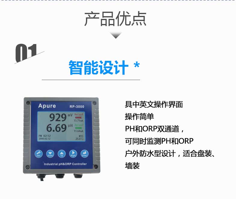 工業(yè)在線酸堿度計(jì)RP-3000 PH計(jì)測試儀 雙通道PH/ORP控制器愛普爾