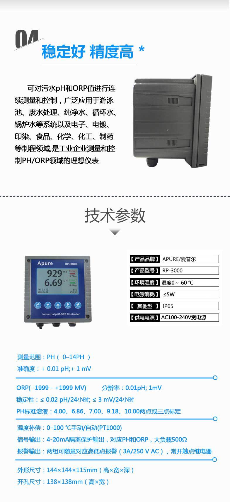 APURE愛(ài)普爾工業(yè)在線PH/ORP控制器RP-3000