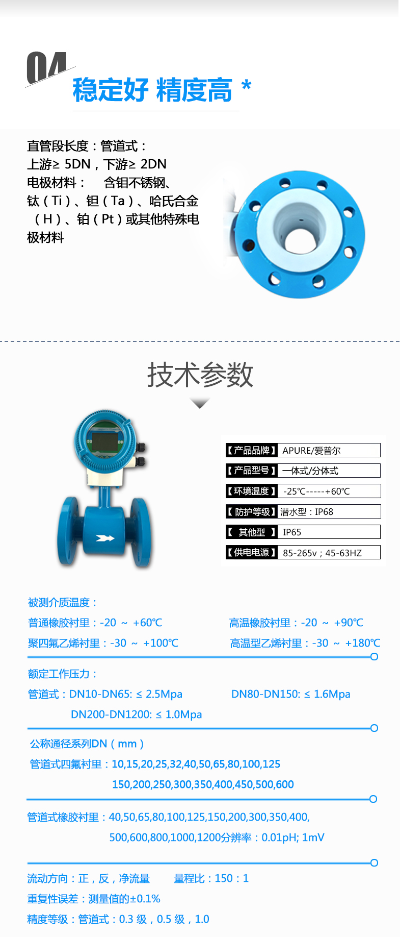 Apure一體式化工污水小型流量計(jì)管道式流量計(jì)