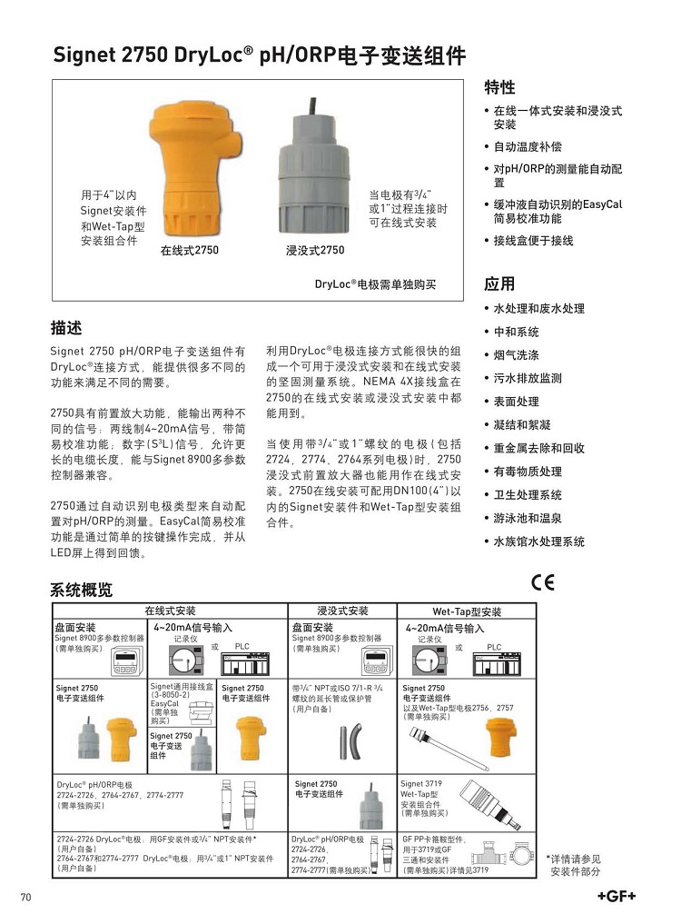 2750型配備了前置放大信號(hào),且具有兩種不同輸出:兩線4-20mA回路輸出或數(shù)字 (S3L) 輸出,后者電纜可較長(zhǎng)且與 8900 型多參數(shù)控制器兼容。